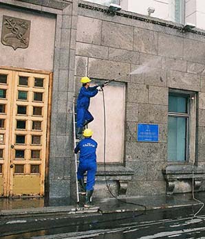 Высотная мойка окон снаружи, подоконников и фасадов зданий и стен